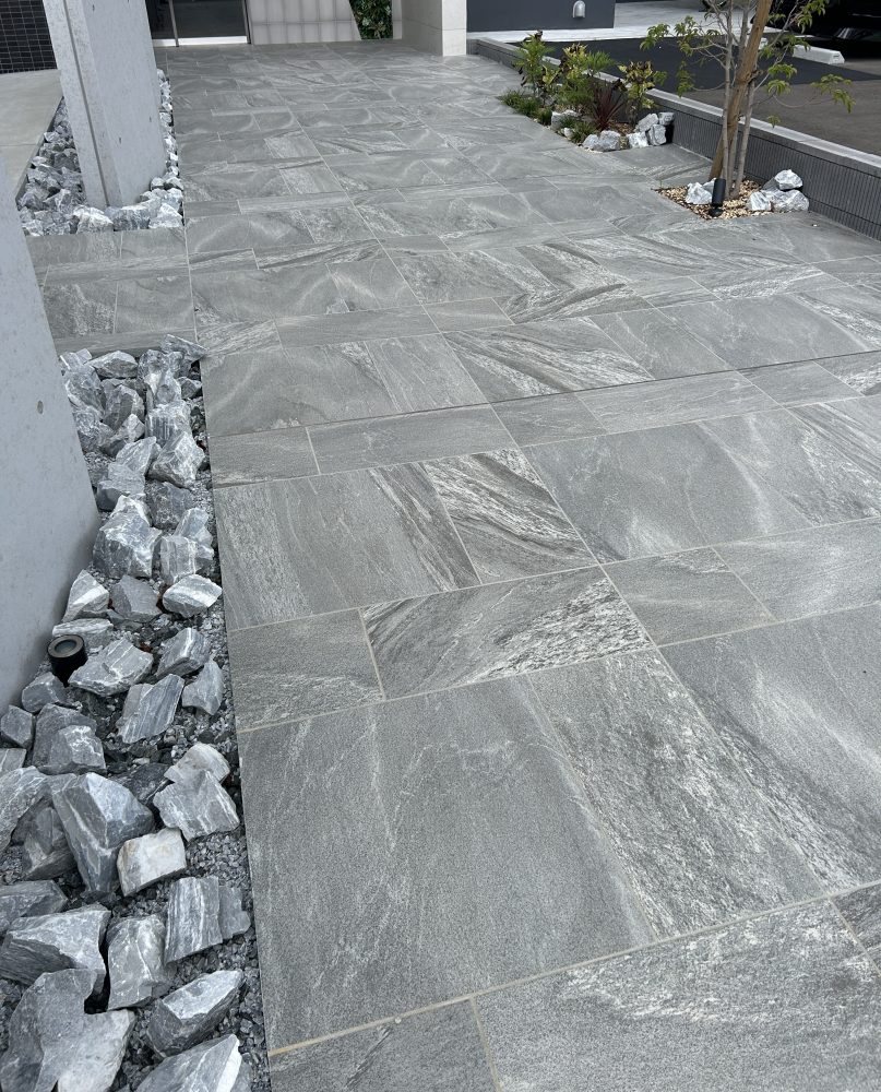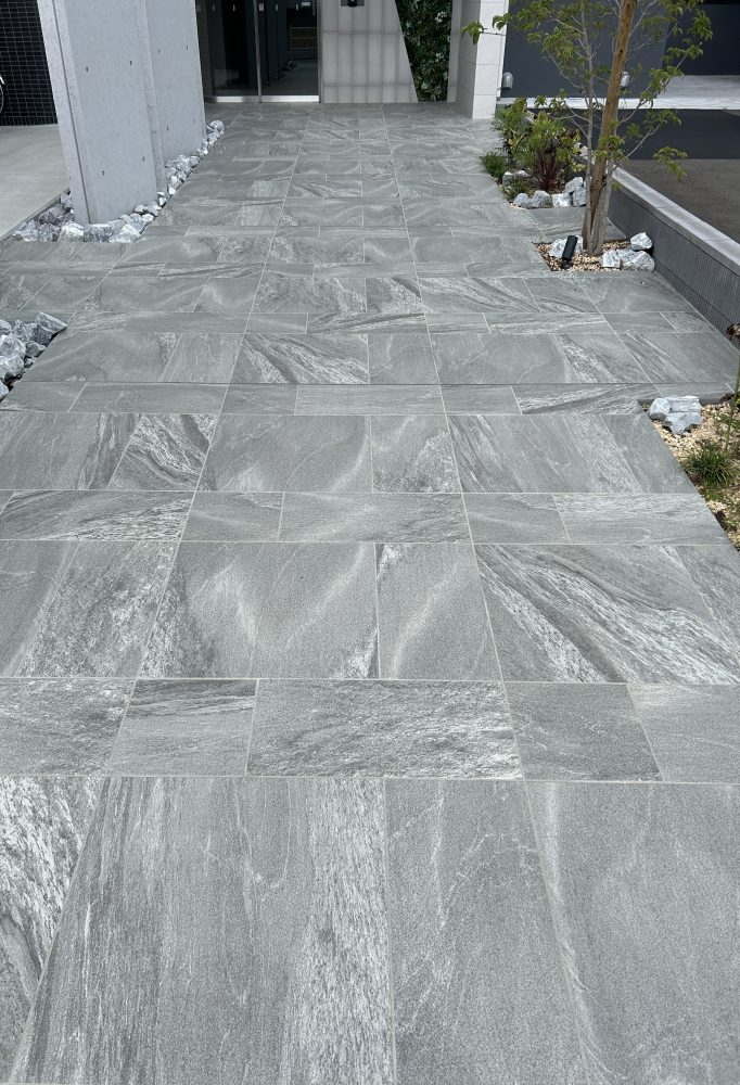 エターナル アプローチ床 施工例 2025.10.16施工例, フロアー, 日々の風景 Share +1 Hatena RSS NF-600/ETR-03・NF-630/ETR-03・BF-300/ETR-03 エターナルの595×595角・595×295角・295×295角の3形状のパターン貼りを紹介します。エターナルはダイナミックな柄模様が魅力あふれるタイルです。 Share +1 RSS 投稿者: 福岡 営業所博多駅をご利用いただいている方は、足元や壁面を見回してみてください。大量に使われているタイルに驚かれると思います。九州は日本の焼き物の「ふるさと」でもあり、タイルのような焼き物には馴染みのある街です。また、南国ムードが漂う「オリエンタル」な雰囲気を演出するタイルの色使いが特徴のひとつです。施工例, フロアー, 日々の風景 エターナル アプローチ床 施工例の施工例