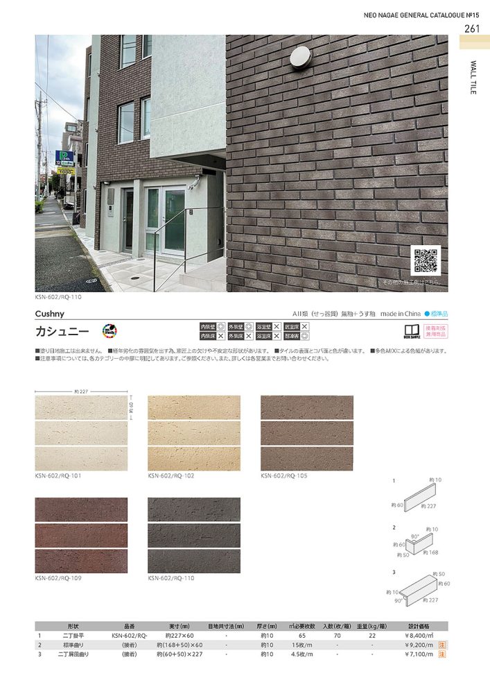 カシュニー 外壁タイル 2025.12.24施工例, エクステリアウォール, 日々の風景 Share +1 Hatena RSS 品番:KSN-602/RQ-110 経年劣化の雰囲気と、欠けや色味の幅をもたせた意匠性を併せもった優れものの二丁掛タイルです! Share +1 RSS 投稿者: 東京 営業所東京の主要な建造物には多数のタイルが使われています。タイルには装飾としての意匠の魅力以外に、時代を越えた「温もり」のようなものがあり、それが人々を魅了して各地の名所と呼ばれる建築に使われているのでではないでしょうか。各観光地の名所にお出掛けの際は是非、建造物のタイルを見つけてみてください。そのタイルもきっと、長く愛される名所の一部として時代を刻んでいます。施工例, エクステリアウォール, 日々の風景 カシュニー 外壁タイルの施工例