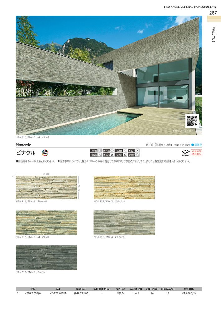 ピナクル エントランス壁 施工例 2025.12.18施工例, エクステリアウォール, 日々の風景 Share +1 Hatena RSS ピナクルNT-4216/PNA-1 ピナクルは、うすい割石を積み重ねたようなイメージのタイルです。ナチュラルテイストな色合い、やわらなな色調が特徴的な商品になっています。 Share +1 RSS 投稿者: 福岡 営業所博多駅をご利用いただいている方は、足元や壁面を見回してみてください。大量に使われているタイルに驚かれると思います。九州は日本の焼き物の「ふるさと」でもあり、タイルのような焼き物には馴染みのある街です。また、南国ムードが漂う「オリエンタル」な雰囲気を演出するタイルの色使いが特徴のひとつです。施工例, エクステリアウォール, 日々の風景 ピナクル エントランス壁 施工例の施工例